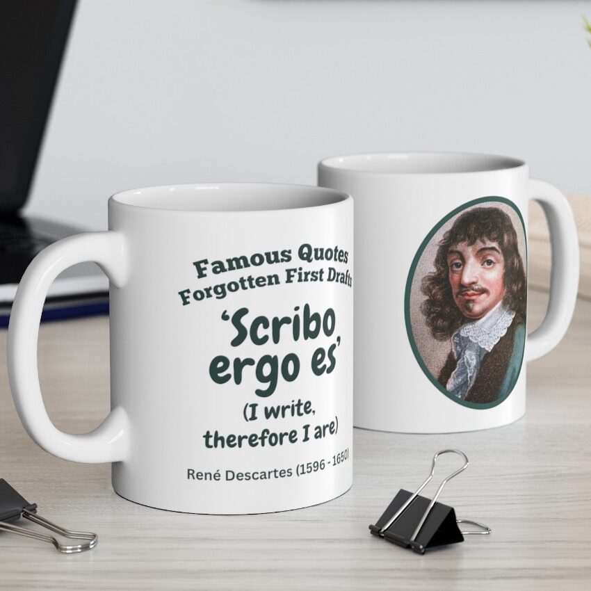 Remind yourself that even the best-known writing started life as a rough first draft with this Famous Quotes, Forgotten First Drafts (Descartes) Ceramic Mug (11oz or 15oz)