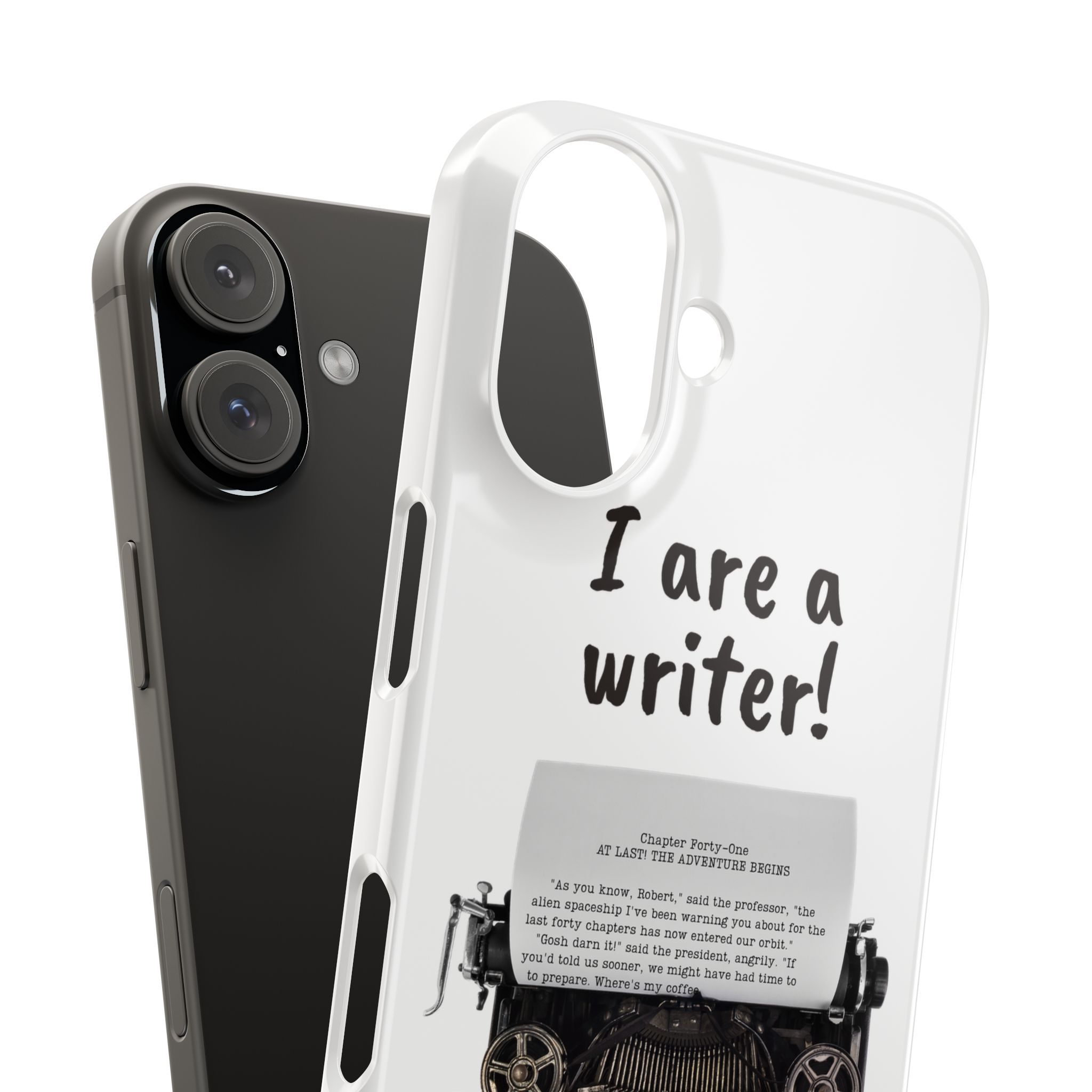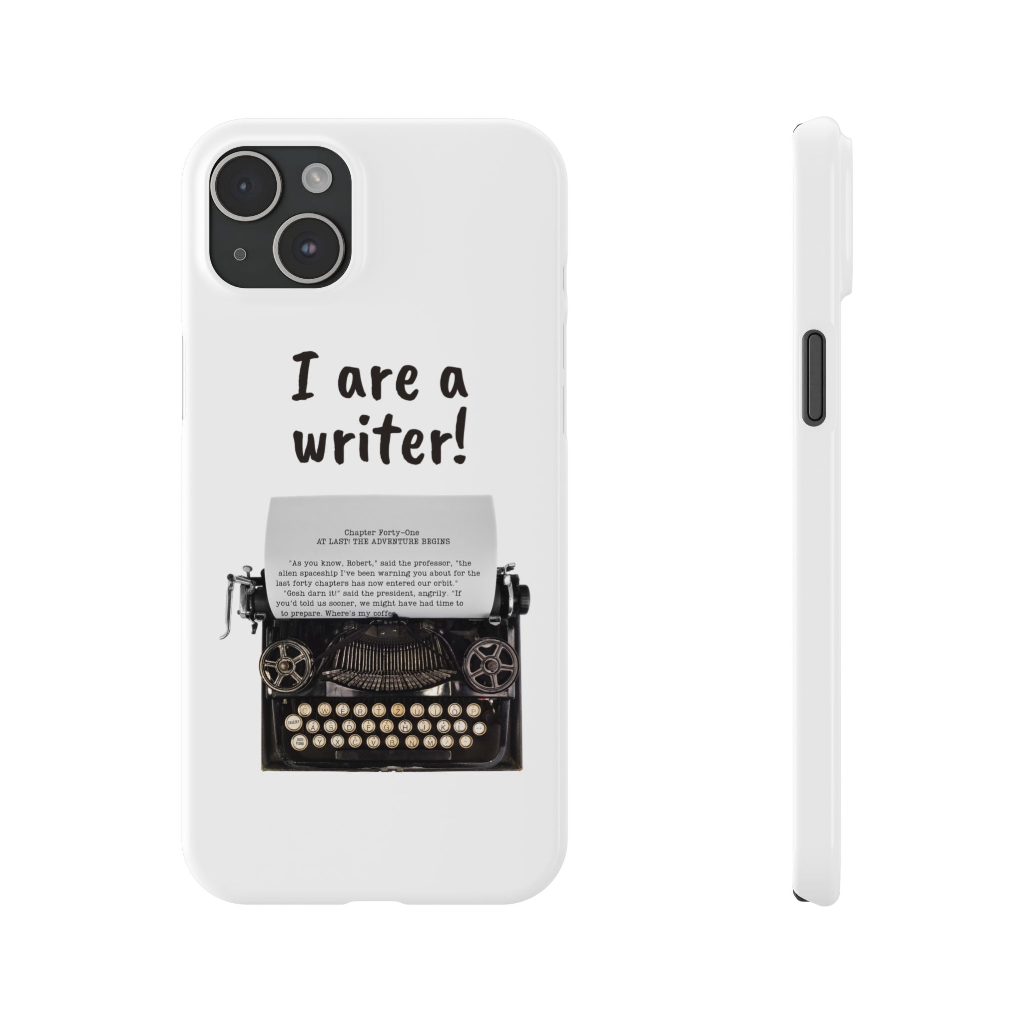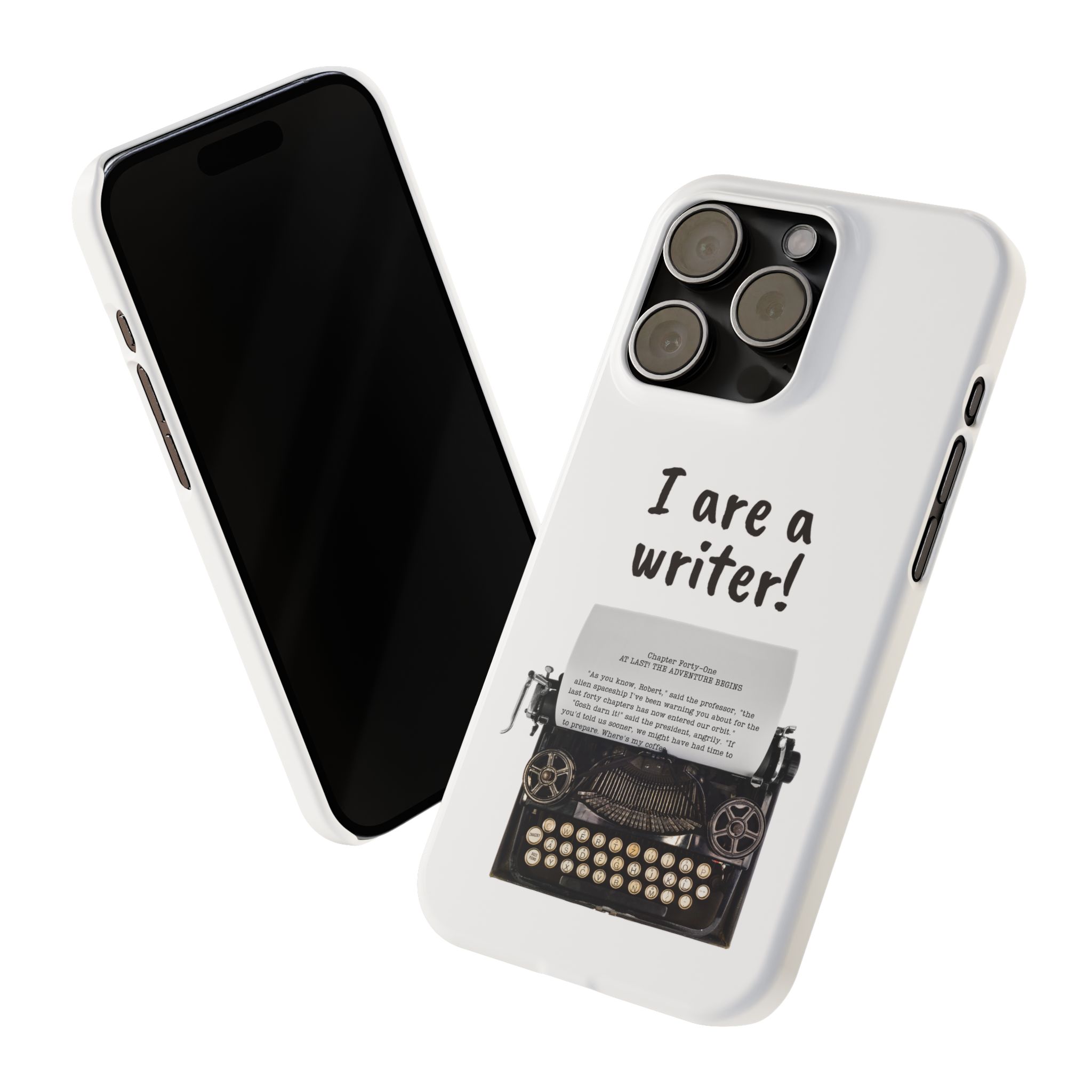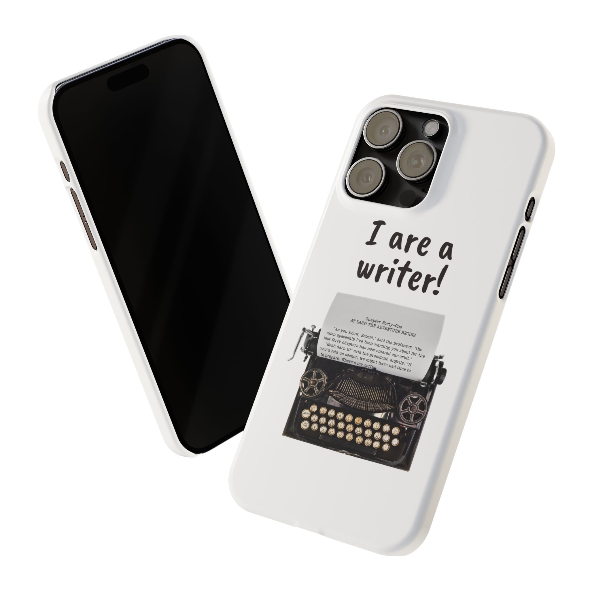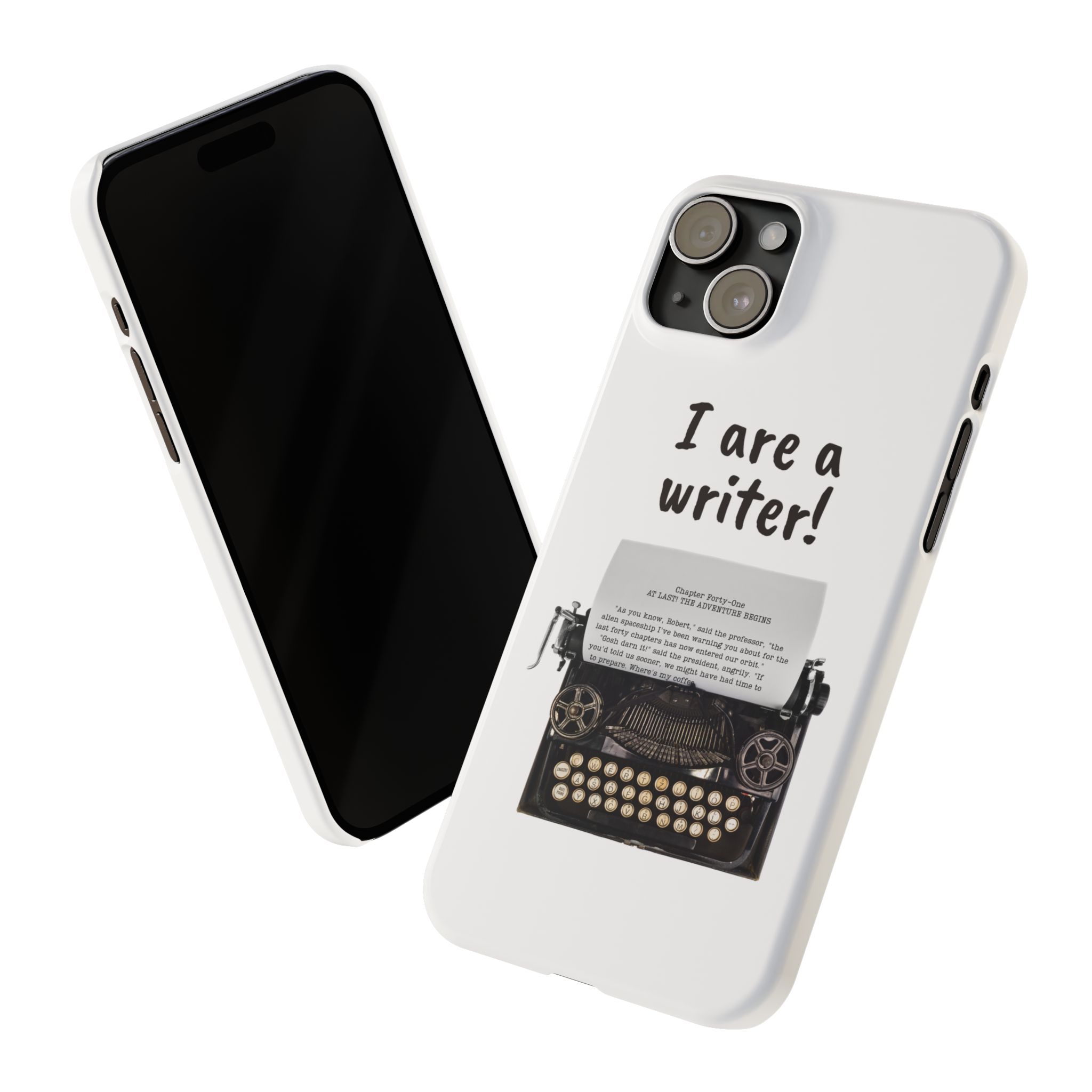 These flexible, super-slim, I are a writer! phone cases provide a flawless fit.