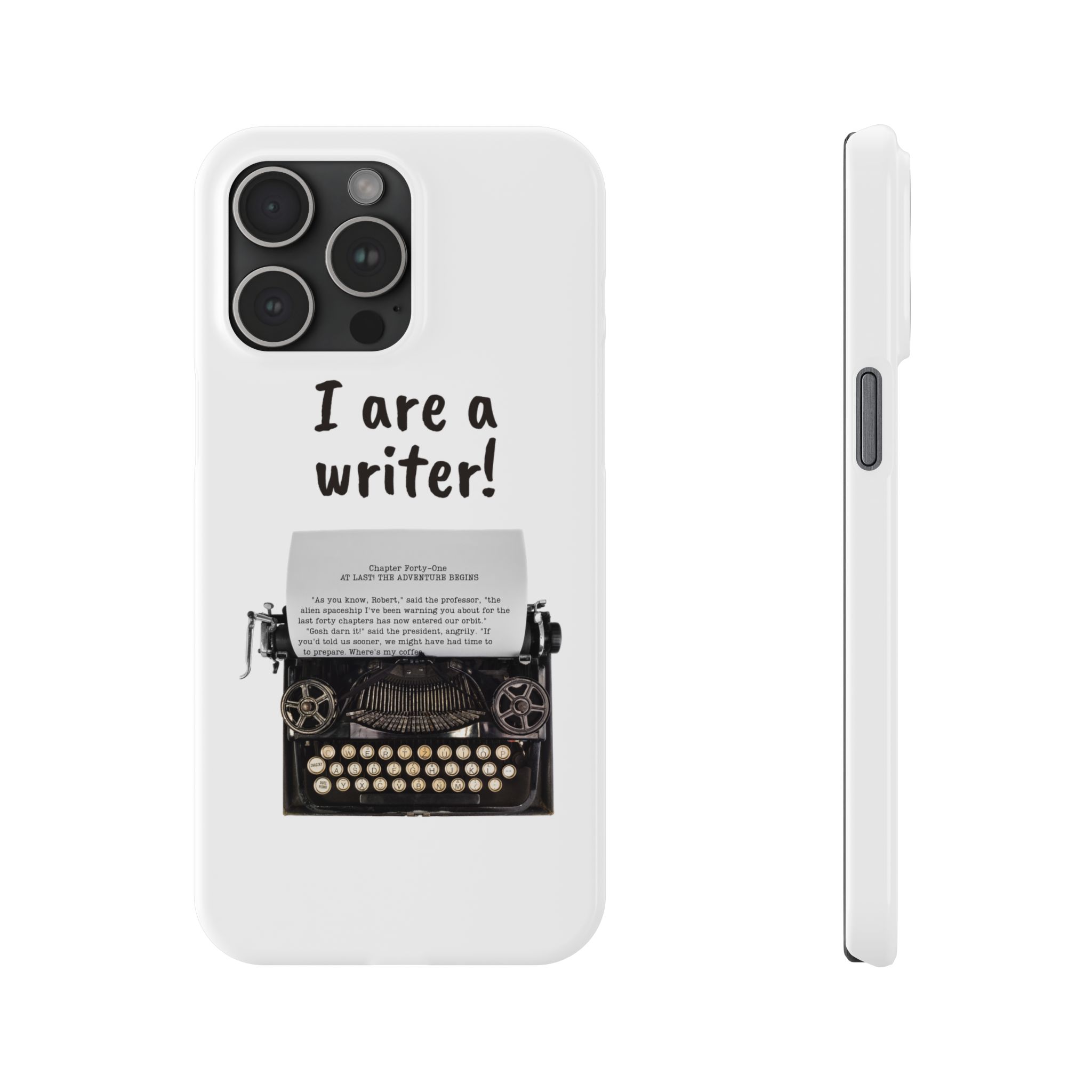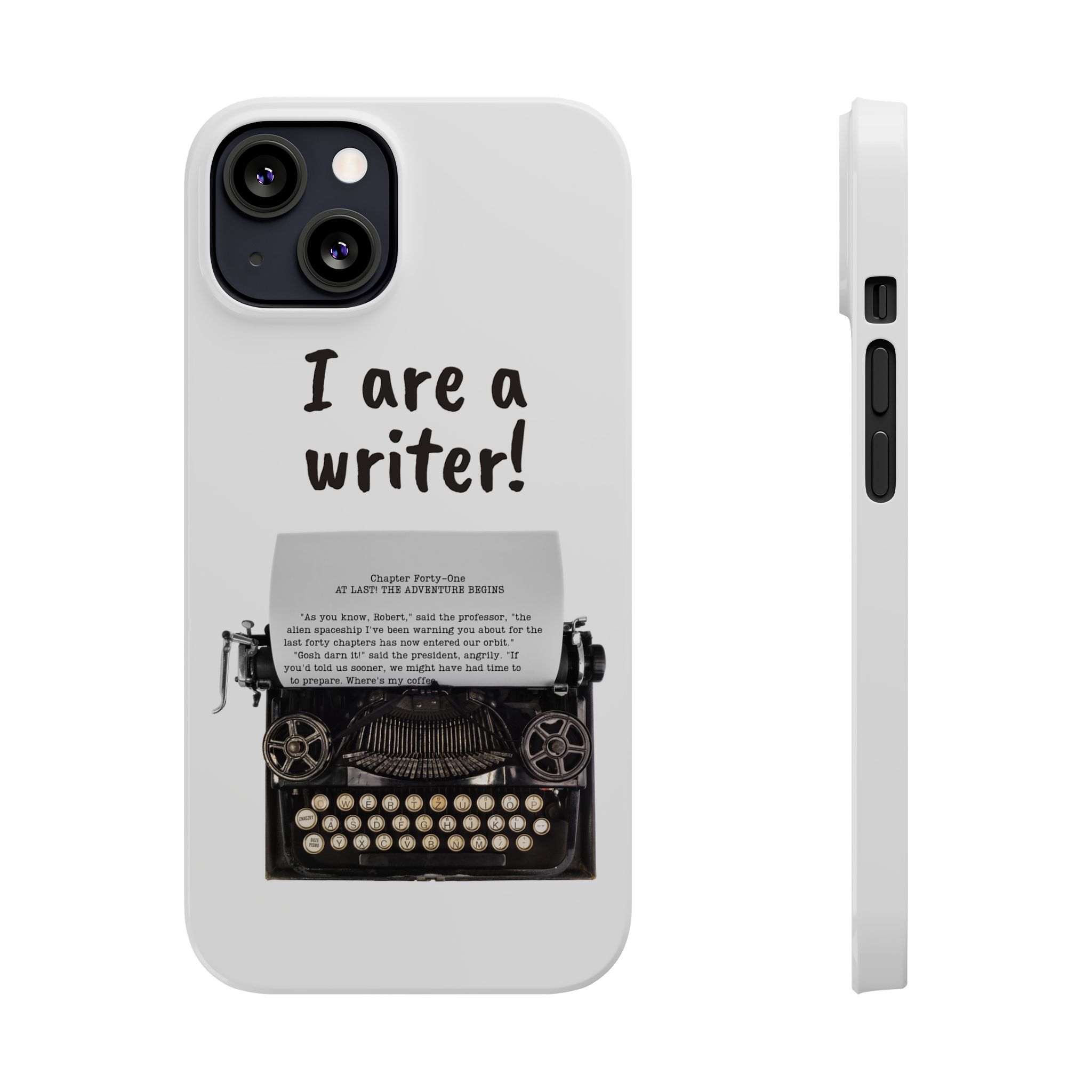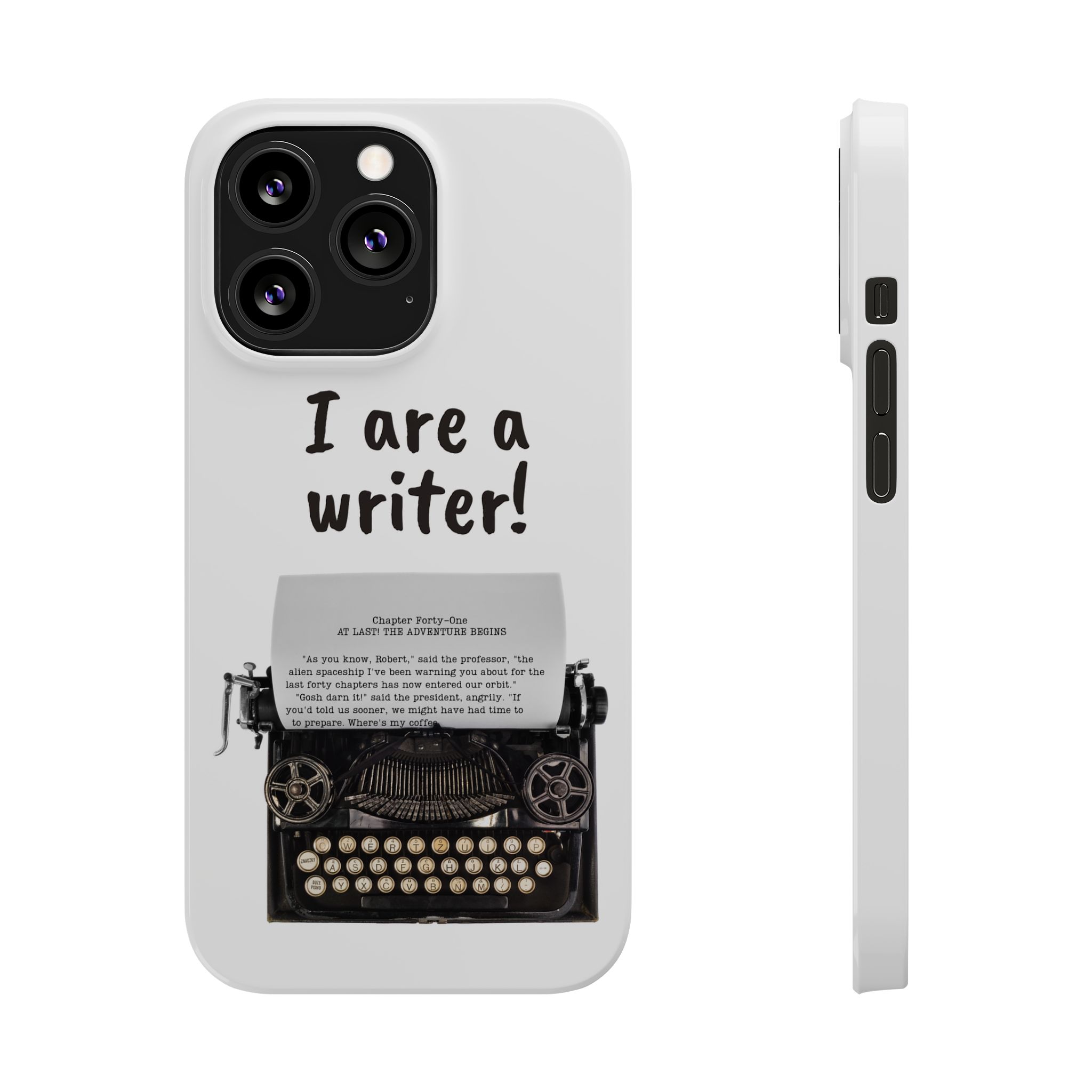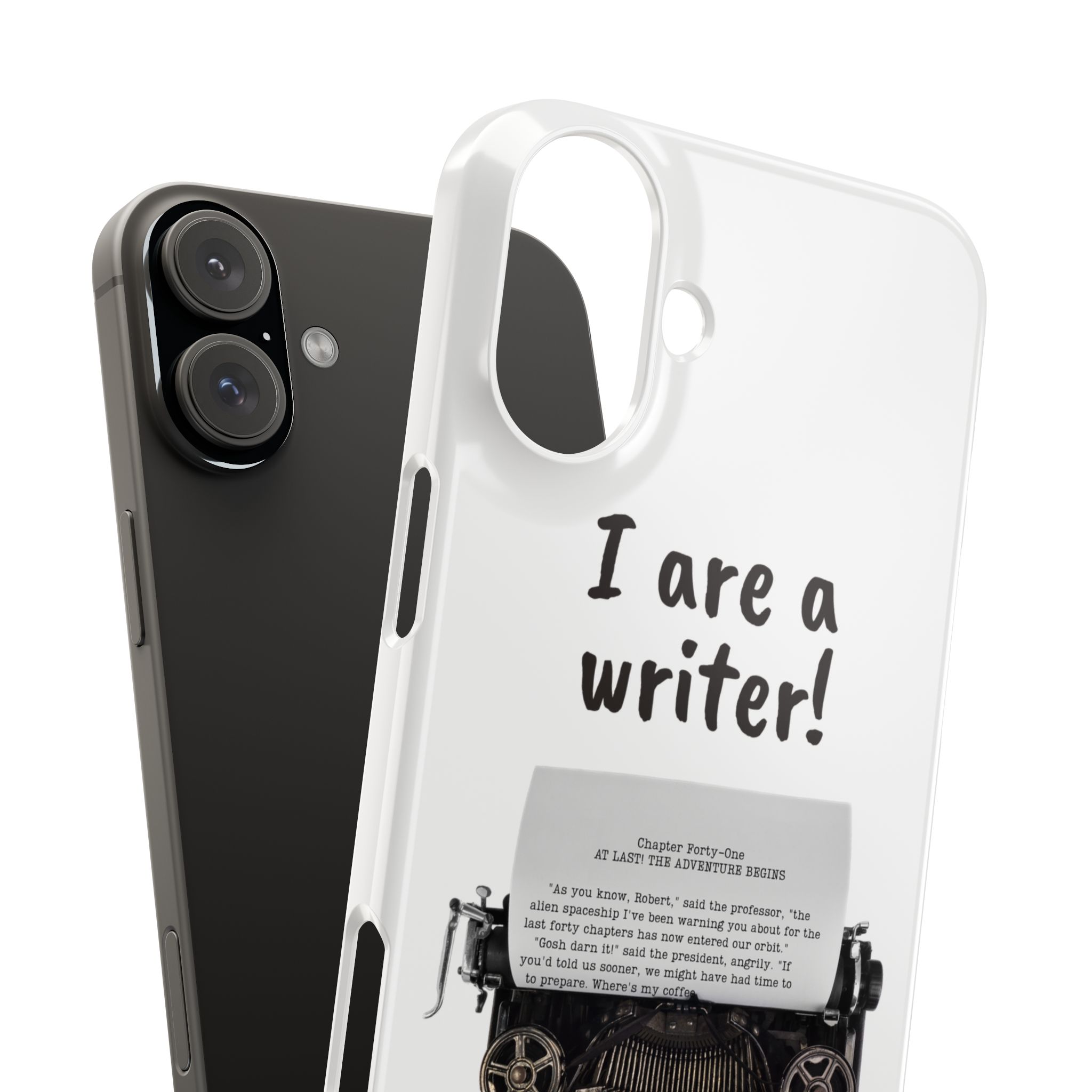 These flexible, super-slim, I are a writer! phone cases provide a flawless fit.