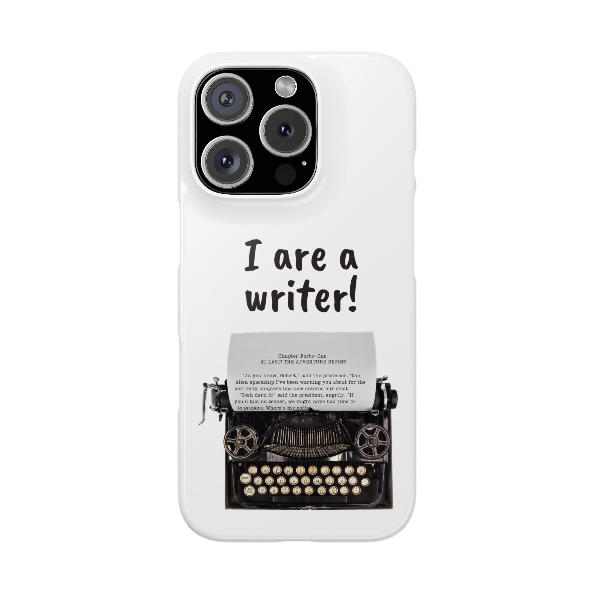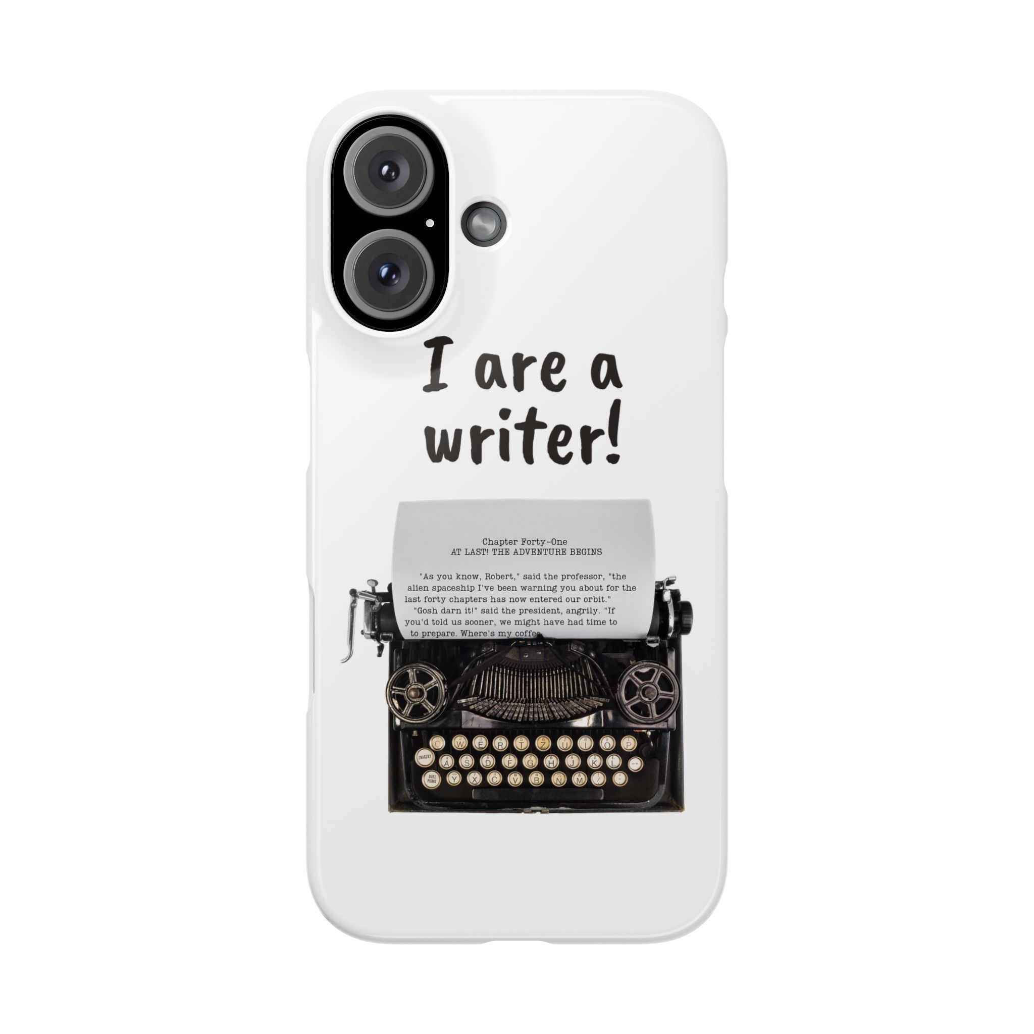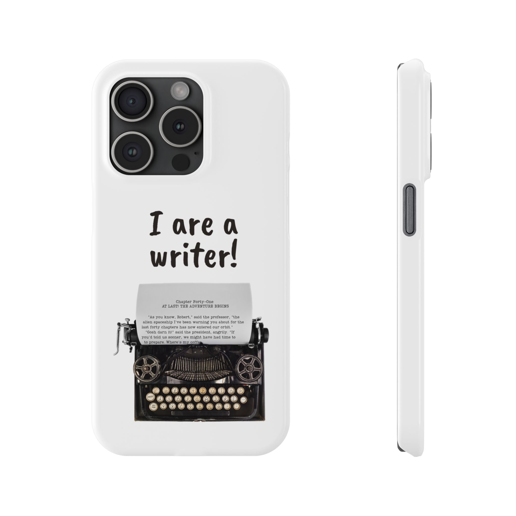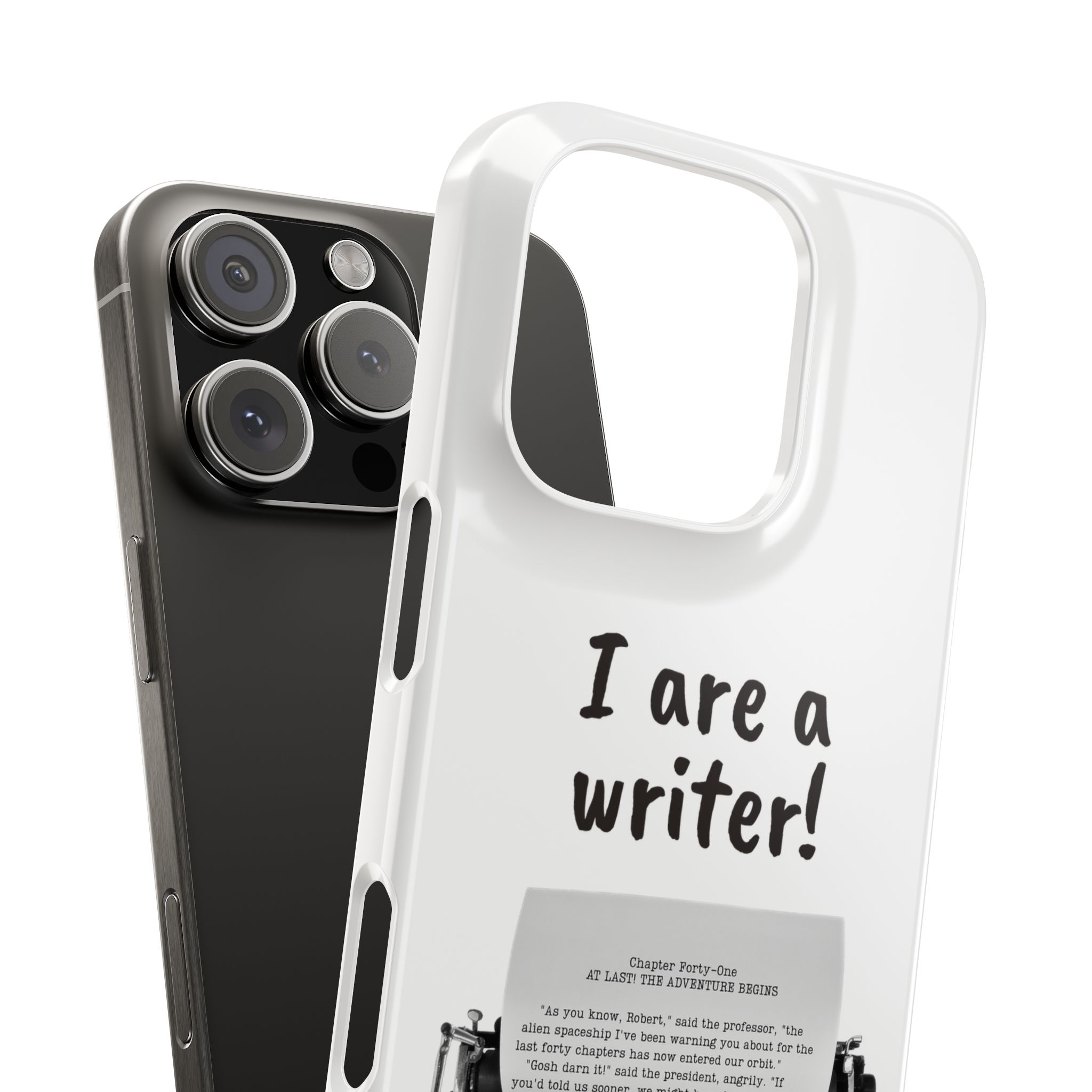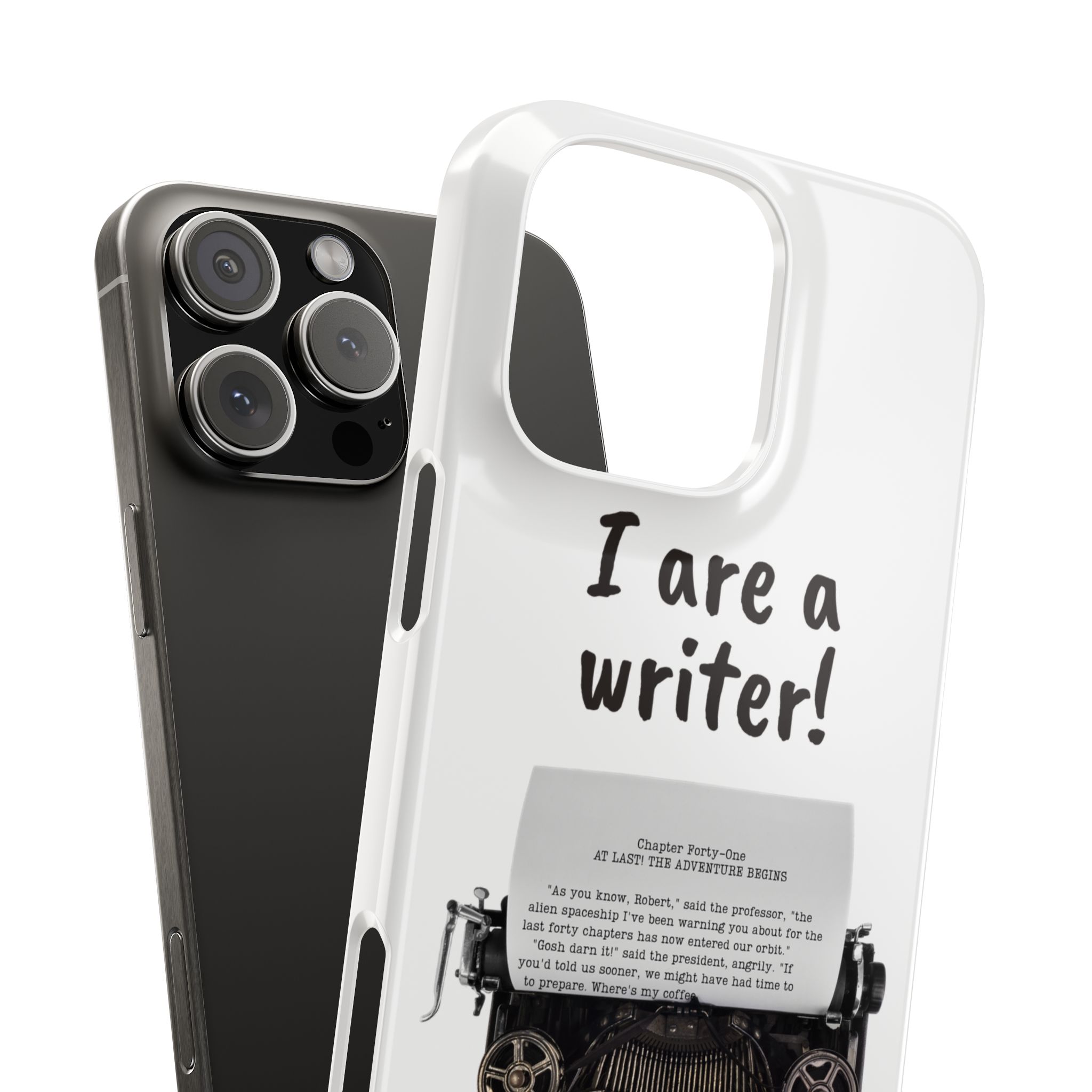These flexible, super-slim, I are a writer! phone cases provide a flawless fit.